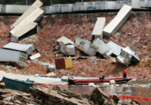 Σύμφωνα με τον επικεφαλής των λιμνεργατών,πάνω από 10 συνάδελφοι του σκοτώθηκαν,ενώ το ρήγμα,μήκους 300 μέτρων,που δημιουργήθηκε από τη γεωλίσθηση,''κατάπιε'' τα κοντέινερ,τα οχήματα και όλα τα υλικά εξοπλισμού του λιμανιού.