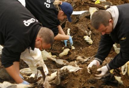 Οι σκελετοί είκοσι θυμάτων της σφαγής της Σρεμπρένιτσα ανασύρθηκαν από έναν κοινό τάφο που βρέθηκε στη συγκεκριμένη περιοχή στην ανατολική Βοσνία,